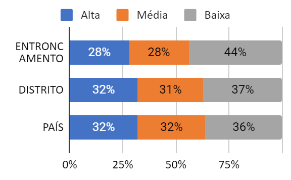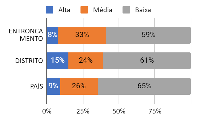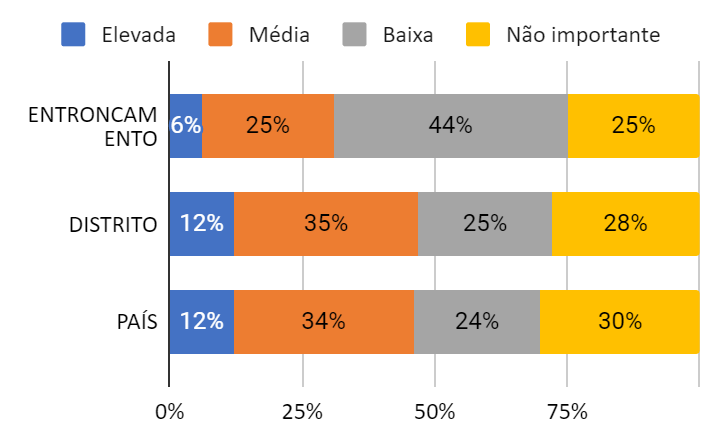 De facto, ao observarmos a parcela cinzenta do gráfico anterior, 44% dos habitantes do concelho do Entroncamento dá pouca ou nenhuma importância à internet. Esta opinião é apenas partilhada por 37% dos residentes do distrito de Santarém e 36% de Portugal.