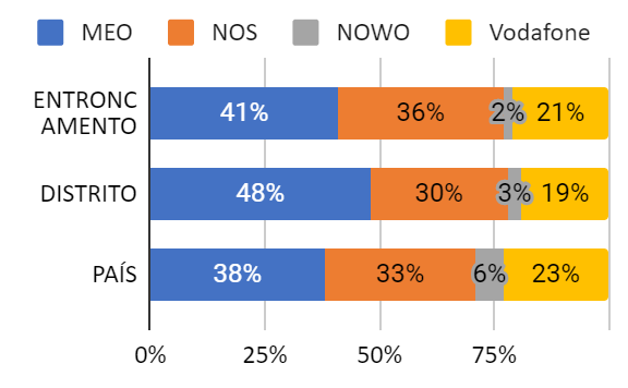 Por fim, aparece a NOWO que, talvez justificada pela fraca cobertura ao longo do território nacional, não vai além de 2% de contratações no Entroncamento, 3% em Santarém e 6% em Portugal.