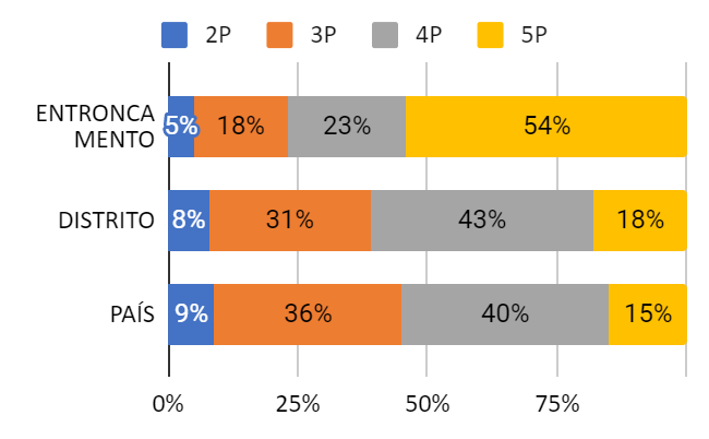 Tanto no distrito de Santarém como em Portugal, o serviço mais escolhido é o 4P, que apenas exclui internet móvel (43% e 40%, respetivamente). No Entroncamento, esta modalidade não vai além de 23% de subscrições. A semelhança entre o concelho em análise, distrito e país está na reduzida contratação da tipologia mais simples, o 2P (ao registar 5% no Entroncamento, 8% em Santarém e 9% em Portugal).