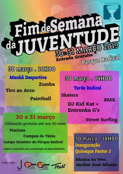 O Fim de Semana da Juventude é organizado pela Câmara Municipal e conta com a colaboração da Associação Factor J, Casa do Benfica e Associação Trust.