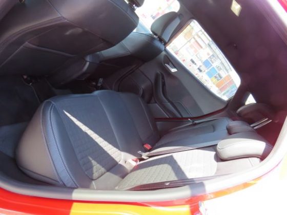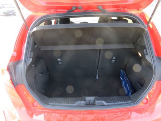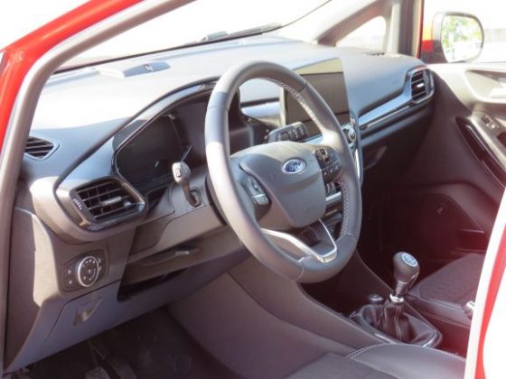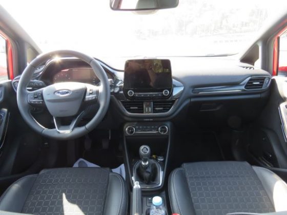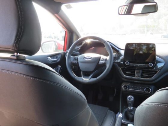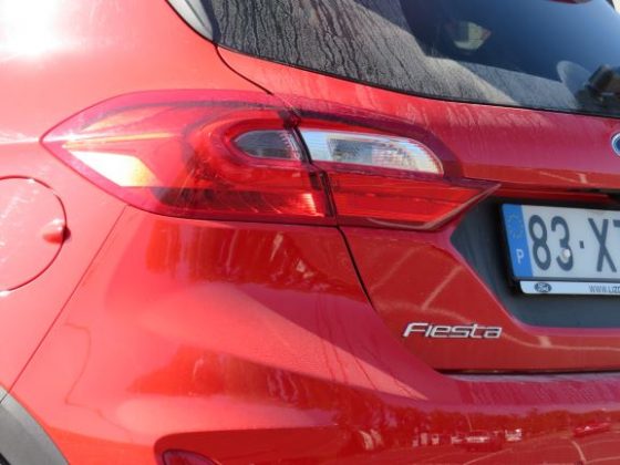 O design está agora mais maduro, muito parecido ao do Focus. Está mais limpo, pois a Ford simplificou e eliminou a “trapalhada” de botões que existia no modelo anterior, tornando-se assim um automóvel mais intuitivo de operar com todos os comandos muito bem organizados. No topo das portas, quer dianteiras quer traseiras, predomina o plástico, o normal para carros deste segmento. Por outro lado, temos material suave a cobrir o tablier e um friso a imitar fibra de carbono, que para o meu gosto pessoal considero estar estupendo e a imitação não é do “chinês”. Os bancos, apesar de não possuírem baquets desportivas, têm um apoio lombar bom para nos manter seguros em curva e, são bastante confortáveis. O volante tem uma boa pega, uma pele agradável ao toque e um pormenor interessante. A Ford preparou a pele do volante do Fiesta para ser resistente ao creme de mãos, protetor solar e afins, fazendo com que a pele da mesma nunca fique manchada. O painel de instrumentos também tem um pormenor inteligente, este é analógico, no entanto, está construído de forma a que quando o carro se encontra desligado nada se veja, ou seja, faz parecer que é digital! Em termos de habitabilidade na parte traseira, conseguimos levar três pessoas sem grande dificuldade em viagens mais pequenas, pois em viagens mais longas pode tornar-se desconfortável por haver pouco espaço para os ombros.