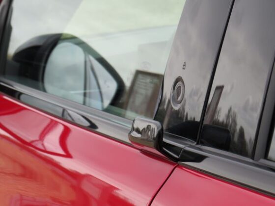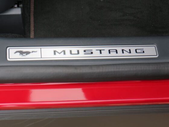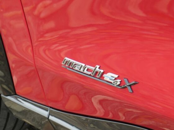 Na parte dianteira temos uma grelha, que embora fechada, tem o formato típico do Mustang e incluí, obviamente, o logo do cavalo. As óticas também têm o mesmo estilo do Mustang embora um pouco mais alongadas, e o capot tem os mesmos ângulos que no desportivo. Na parte lateral temos a silhueta também do carro mas maior e mais elevada relativamente ao solo. A parte do vidro traseiro e o tejadilho a inclinar par trás é tal qual como no desportivo. Temos ainda uns jantes opcionais de 20 polegadas acompanhadas de umas bombas de travão vermelhas. Na base das portas dianteiras temos a inscrição “Mach-E 4X” que significa que estamos na versão de tração às 4 rodas. Ressalvo também que não temos puxadores das portas. Para abrirmos temo uns botões nos pilares das portas, e caso este botão falhe, será sempre possível abrir as portas por um pin num teclado tátil que também aparecerá nos pilares. Na parte traseira também é o típico Mustang mas maior. As curvas presentes na mala do desportivo estão aqui também, e as óticas são iguais, com a exceção de que temos uma faixa luminosa a ir em direção ao centro da mala.