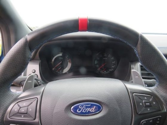 A Ranger Raptor vem equipada com um motor 2.0 a diesel com 213cv, e uma caixa automática de 10 velocidades.