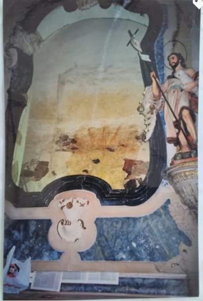 A descoberta ocorreu por ocasião da substituição de uma tela do altar da Senhora da Piedade Após ter sido fotografado o fresco terá sido objeto de intervenção por… trabalhos de trolha
