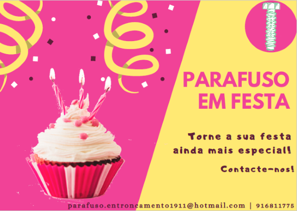 Para mais informações sobre o “PARAFUSO EM FESTA” basta entrar em contacto para 916811775 (Andreia Correia).