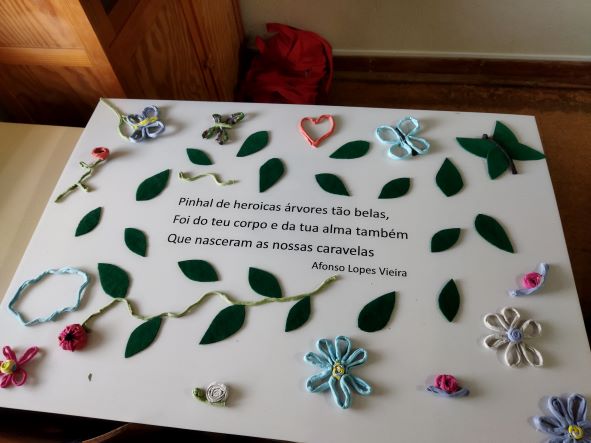 A 21 de março, o grupo de teatro animou a escola com a arte de dizer poesia e com as palavras sábias dos poetas que souberam olhar as árvores, como António Gedeão, para quem As árvores crescem sós. E a sós florescem (…)/E tudo sempre a sós, a sós consigo mesmas. Os mais pequenos ofereceram versos soltos em rolinhos e animaram os mais velhos com as palavras de Alexandre O’Neill que nos dizem que amigo é “… um sorriso/ “De boca em boca,/ Um olhar bem limpo,/ Uma casa, mesmo modesta, que se oferece,/ Um coração pronto a pulsar/ Na nossa mão!”. Mesmo que tropecem nalgumas palavras, aprende-se o gosto de as dizer…