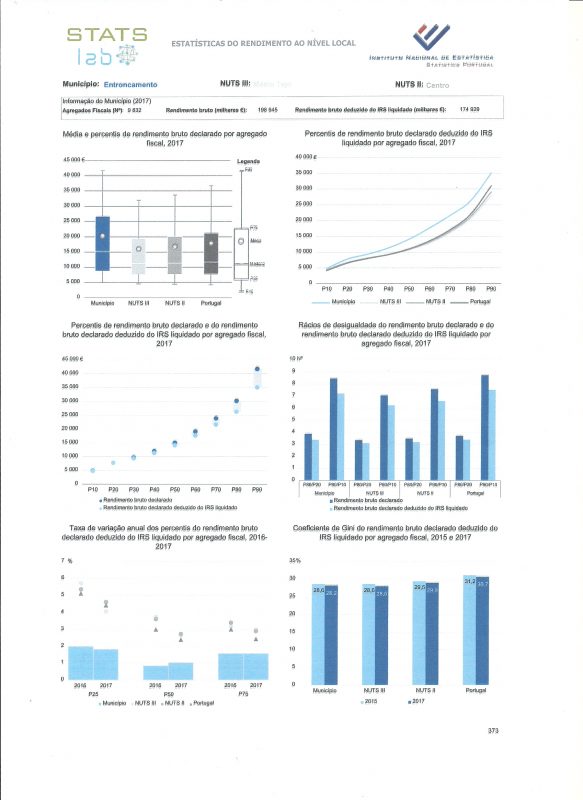 Em 2017, em 45 municípios, localizados maioritariamente nas áreas metropolitanas de Lisboa (17 em 18 municípios) e do Porto (Porto, Maia e Matosinhos), na Região de Aveiro (Aveiro e Ílhavo), na Região de Coimbra (Coimbra, Figueira da Foz e Condeixa-a-Nova), na Região de Leiria (Marinha Grande e Leiria), no Alentejo Litoral (Santiago do Cacém e Sines), no Baixo Alentejo (Castro Verde e Beja) e, nas regiões autónomas dos Açores (Ponta Delgada, Angra do Heroísmo e Horta) e da Madeira (Funchal, Porto Santo e Santa Cruz) o valor do percentil 20 e do percentil 80 do rendimento bruto declarado deduzido do IRS liquidado por sujeito passivo superavam a referência nacional.