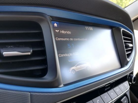 Os gráficos são bons, tem uma boa velocidade de processamento e é intuitivo pois funciona como um tablet com pequenas aplicações. A existência de botões físicos de atalhos aos menus ajuda bastante, pois durante a condução com um sistema apenas táctil pode tornar-se um pouco difícil navegar entre menus. Temos também uma pequena aplicação especial intitulada de “Híbrido”. Nela é possível ver dados como o consumo de combustível com um gráfico dividido pelo consumo do motor de combustão e elétrico, um gráfico com nível de condução Eco e um esquema do carro com o fluxo de energia.