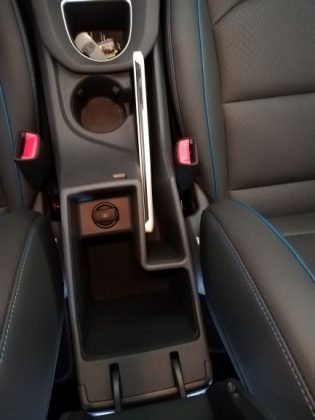 Relativamente ao design interior este é simples mas funcional, todos os comandos estão bem acessíveis ao condutor, não sendo preciso desviar muito a atenção da tarefa principal que é a condução. Temos também uns detalhes em azul no volante, em volta do botão de ignição e saídas de ventilação, para nos recordar que estamos num veículo ecológico.