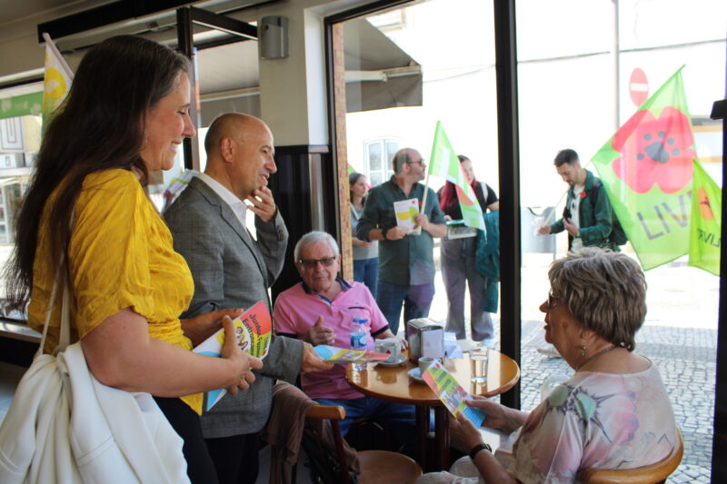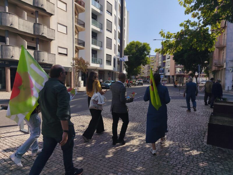 O centro da cidade do Entroncamento foi palco, esta quinta-feira, de uma ação de campanha do Partido LIVRE, que contou com a presença do candidato à Câmara Municipal, Rui Simões, e da líder parlamentar do partido, Isabel Mendes Lopes. A comitiva percorreu as principais ruas da cidade, incluindo a Rua da Calçada, num momento de contacto direto com a população e os comerciantes locais.
