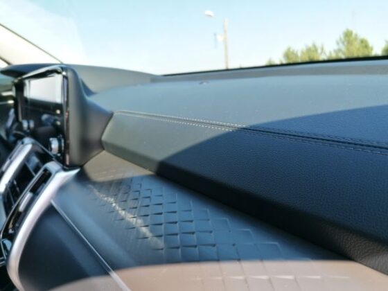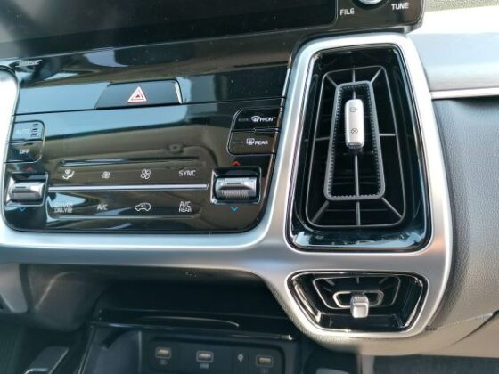 Na parte dianteira temos a típica grelha nariz de tigre da Kia que é enorme e muito parecida à do Telluride. Os para-choques também são semelhantes com uns apontamentos pretos nas laterais. Para ajudar a este estilo a frente é alta e bastante imponente. Na parte lateral também temos um perfil bastante robusto e é aqui que conseguimos ver o verdadeiro comprimento do Sorento. Destaco o pormenor na janela traseira que se assemelha ao pormenor que temos na carrinha Proceed. A parte traseira também é bastante imponente e tem umas óticas também com estilo “americanado” fazendo até lembrar as do Mustang (com menos uma faixa luminosa). O que já não é tão americano, mas mais europeu, é a colocação de imitação de ponteiras de escape embutidas no para-choques, e que neste caso são bastante denunciadas.