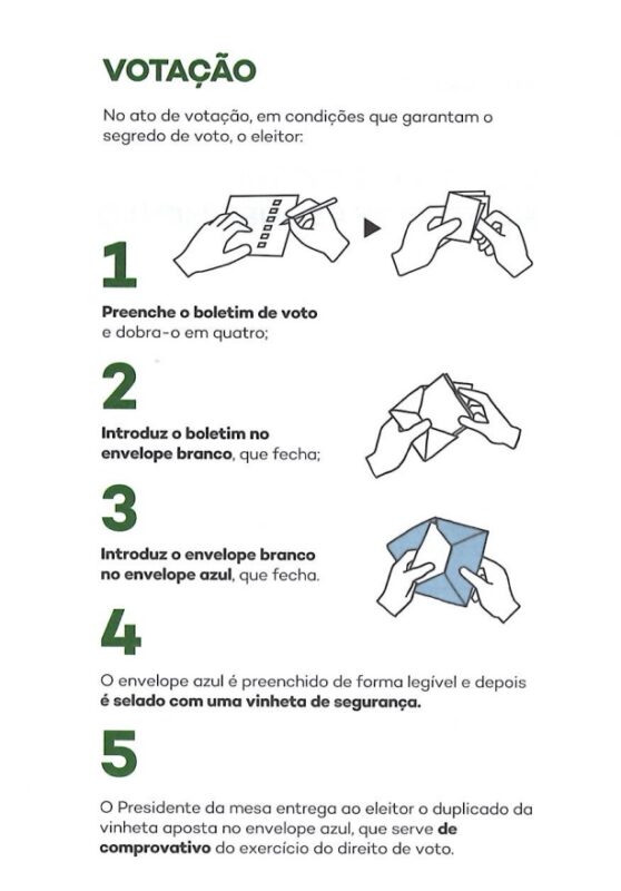 Entre 17 e 20 de janeiro, o presidente da câmara municipal ou o seu representante irá deslocar-se ao local onde está o eleitor para entregar e recolher o boletim de voto.