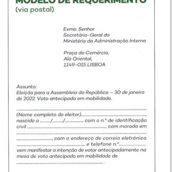 Já foram divulgadas as datas para pedir o voto antecipado para as eleições legislativas, que acontecem a 30 de janeiro de 2022. O voto antecipado aplica-se a pessoas em mobilidade, em internamento, em prisão, em lares, em confinamento obrigatório devido à COVID-19 e pessoas deslocadas no estrangeiro por motivos profissionais, escolares ou de saúde.