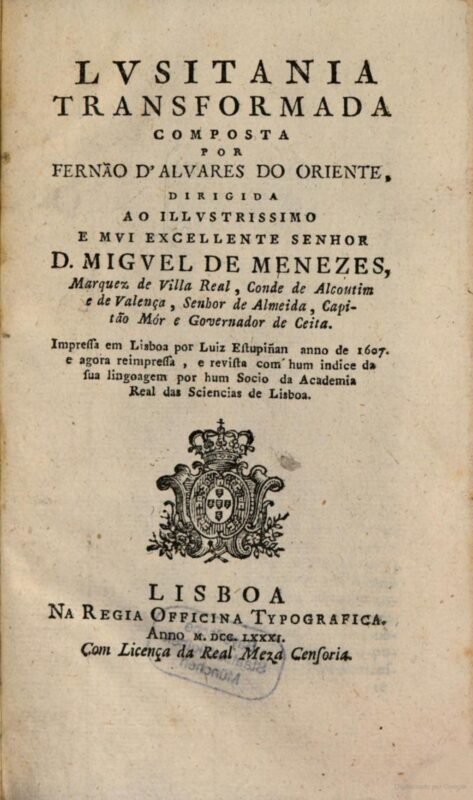 «Lusitânia Transformada» é uma novela em prosa e verso, constando de três livros. A obra, de Fernão Álvares do Oriente, veio a público pela primeira vez , postumamente, em 1607, através de Luys Estupinan, sob responsabilidade do livreiro Domingos Fernandes, o qual declara que o autor já tinha morrido. A primeira reedição surgiu em 1781, na Academia Real das Ciências de Lisboa, sendo da responsabilidade do seu sócio, o padre Joaquim de Foyos.