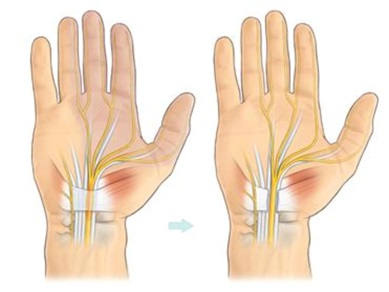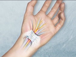 O nervo mediano, localizado a nível do punho no túnel cárpico é responsável pela sensibilidade de alguns dedos da mão (do polegar até metade do anelar) e pela inervação motora de alguns músculos. O síndrome do túnel cárpico resulta da compressão do nervo mediano ao nível do punho.