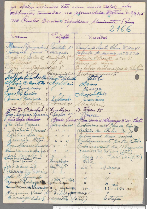 Listas 2166 e 2166 verso (Pasta 10395) – Laurindo de Azevedo, ferroviário,