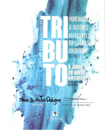 O Entroncamentense Mário de Matos Rodrigues viu o seu “trabalho literário” ser contemplado como “Coautor” do livro “TRIBUTO – Homenagem a Autores Marcantes da Literatura Universal…Volume I ” da Chiado Editora.