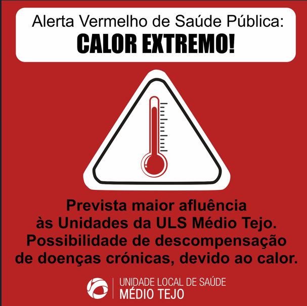 A Unidade Local de Saúde do Médio Tejo (ULS Médio Tejo) anunciou que foi decretado o alerta vermelho de saúde pública nos concelhos da região, devido às temperaturas extremas que se farão sentir hoje e nos próximos dias. O alerta é acionado quando os termómetros ultrapassam os 38ºC, representando um risco elevado para a saúde, sobretudo entre os grupos mais vulneráveis.