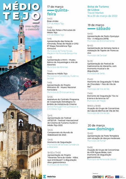 Assim, destaca-se a apresentação do Guia das Rotas e Percursos do Médio Tejo, o Programa Páscoa no Médio Tejo, que envolve celebrações em Constância, Ourém e Sardoal e o lançamento do Campeonato do Mundo de Wakeboard de 2023.