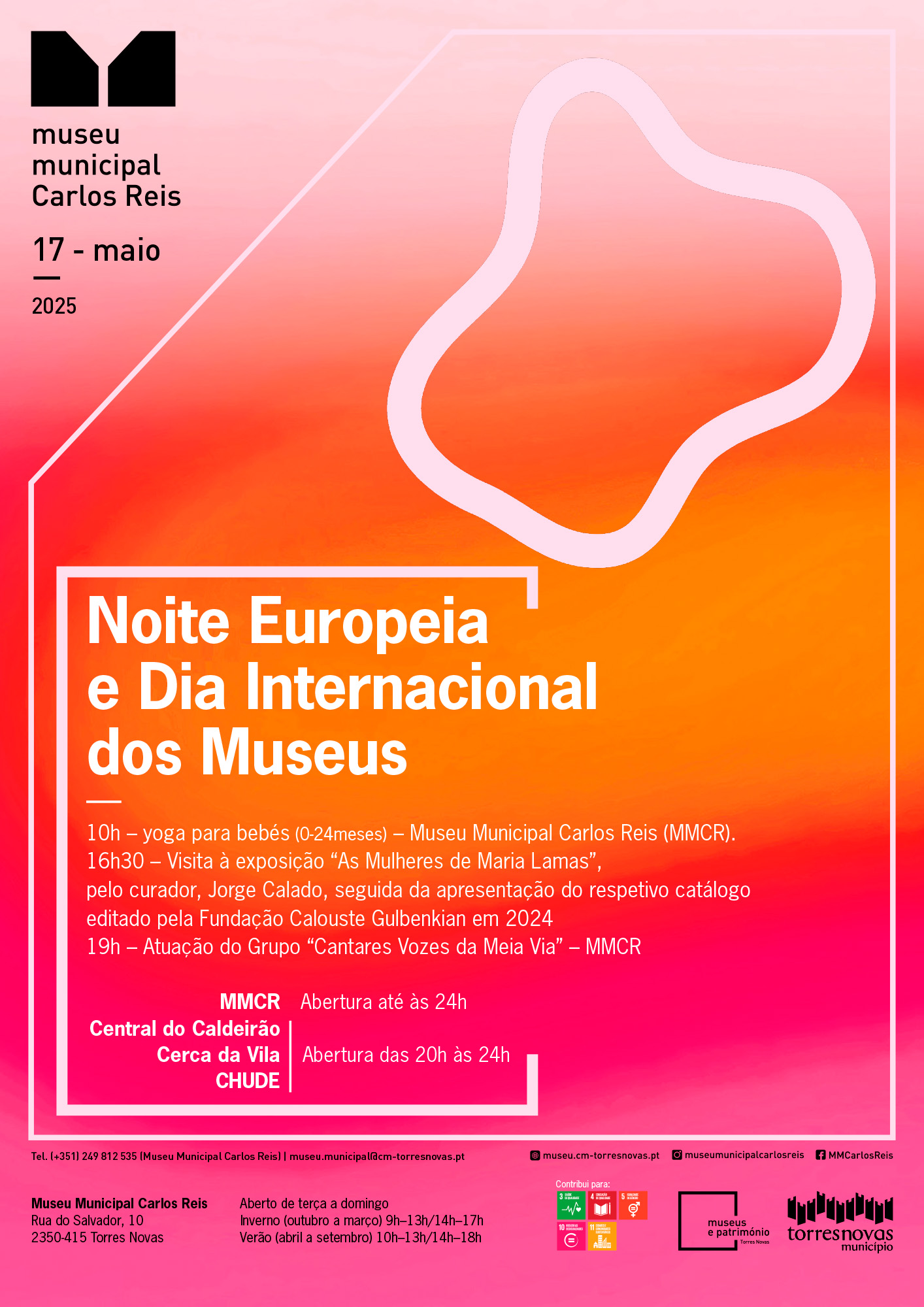 Para assinalar a Noite Europeia dos Museus, o Museu Municipal Carlos Reis estará aberto ininterruptamente até às 24 horas, e os núcleos museológicos Cerca da Vila, CHUDE e Central do Caldeirão estarão abertos entre as 20h e as 24h.