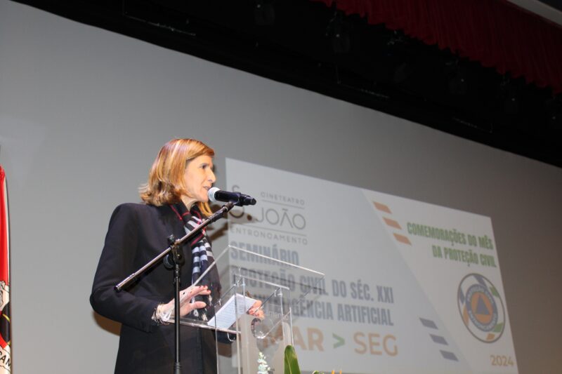 Seminário decorreu no cineteatro São João, contando com a presença de Patrícia Gaspar, secretária de estado da Proteção Civil. Março é o mês da Proteção Civil e os desafios, positivos e negativos, da Inteligência Artificial, estiveram no centro das intervenções