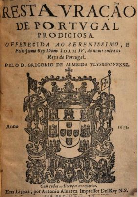 Fonte- ALMEIDA, Dom Gregório de, (1643), Restauração de Portugal prodigiosa, Lisboa, António Alvarez impressor del Rey N.S.