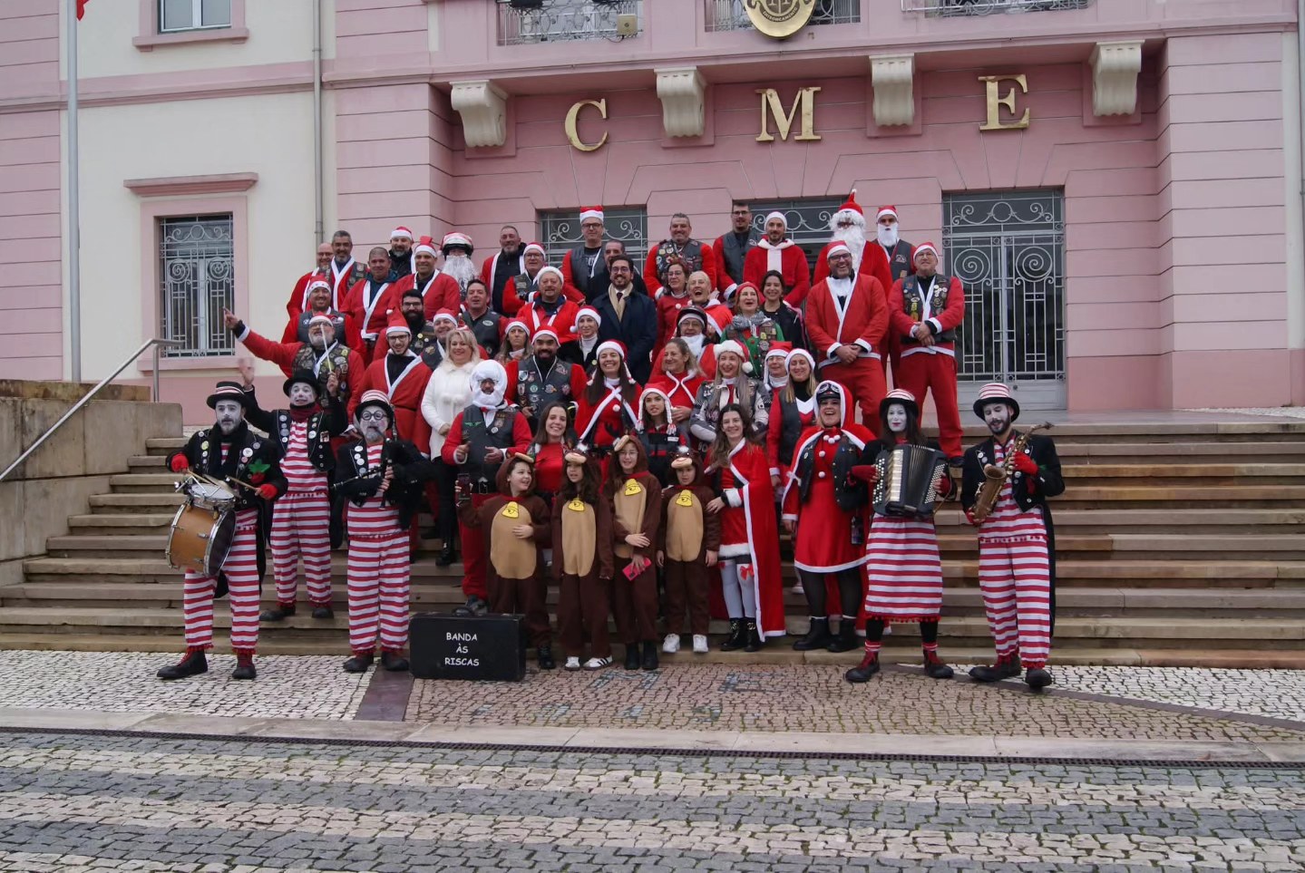 Na sexta feira, o Motoclube “Os Fenómenos Entroncamento” levou a magia do Natal às escolas do concelho e a toda a cidade, tendo feito uma paragem simbólica junto à Câmara Municipal para foto de grupo.