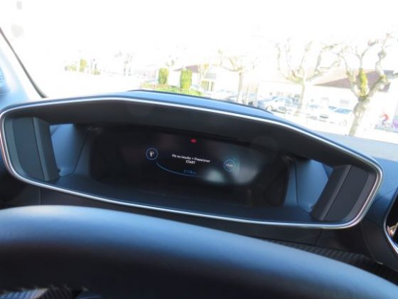 Temos de série um painel de instrumentos digital com efeito 3D (Peugeot i-cockpit 3D), coisa rara em automóveis mesmo nos topo de gama! Para além de bonito é um painel bastante completo, pois conseguimos ter várias visualizações (forma como se apresenta o velocímetro) e várias informações presentes no mesmo (informações do computador de bordo, mapa, ajudas à condução, etc). Na parte central temos um ecrã de 7 polegadas com um sistema que não é o melhor, mas também não é o pior. O sistema em si tem um velocidade de processamento razoável mas não é muito intuitivo, problema que acho que poderia ser resolvido com mais botões de atalho entre menus. Nas ajudas à condução temos o cruise control adaptativo, o sistema de aviso de colisão frontal, sistema de manutenção da faixa de rodagem e assistente de estacionamento com “câmara 360º”. A razão de ter posto a câmara entre aspas é porque ela não é uma câmara de 360º propriamente dita. O que o sistema faz é desenhar uma fotografia à volta do carro com o que a câmara traseira vai filmando. Ora isto apenas é eficiente com coisas estáticas, pois com algo que se mova já não vamos ter uma imagem que corresponde à realidade.