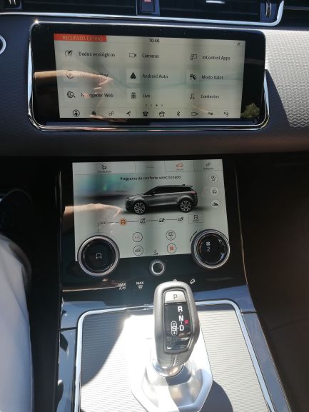 No entanto nas capacidades todo o terreno não há igual. Temos variadíssimos modos de condução como o modo “relva, gravilha e neve”, “lama e trilhos” e “areia”. Obviamente não conseguimos testar estes modos, mas conseguimos testar o ALL TERRAIN PROGRESS CONTROL (ATPC), que é um modo que nos leva por subidas e descidas de forma segura e confortável pois não precisamos de fazer nada. Neste modo apenas temos de selecionar a velocidade que desejamos que o Evoque suba e desça a colina, sempre com um limite máximo imposto por segurança, e deixamos o Evoque fazer o seu trabalho de distribuição de potencia para cada roda para garantir a melhor tração, travagens automáticas para descer em segurança, etc. Basicamente a única coisa que necessitamos de fazer é virar o volante para não cairmos num buraco.