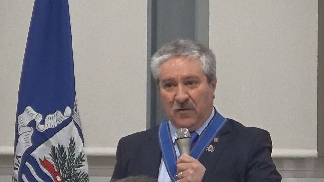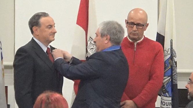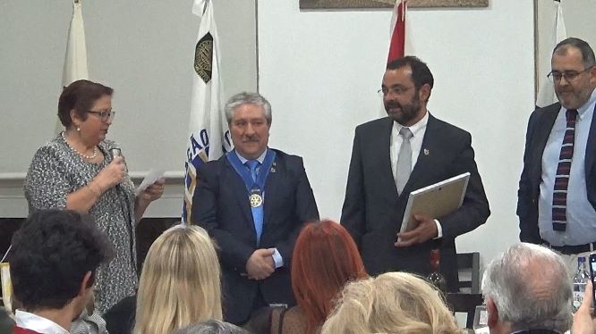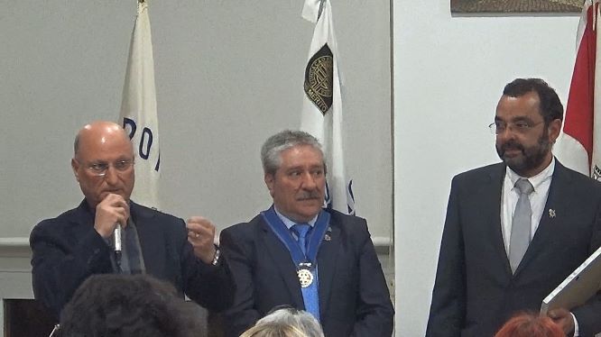 A mesa foi composta com o Presidente do Rotary do Entroncamento, Helder Cunha, pela esposa natalina, pelo Governador Assistente, José Luís Silva, pelo homenageado Sérgio Gomide e pelo Presidente da Câmara de Vila Nova da Barquinha, Fernando Freire.