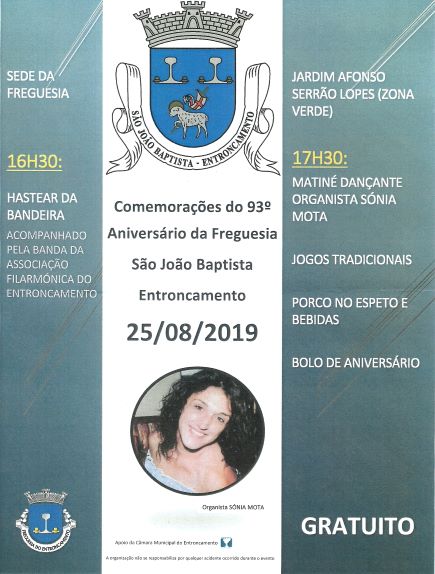 A Freguesia de São João Baptista do Entroncamento vai comemorar este ano o seu 93º, uma vez que a Freguesia do Entroncamento foi criada em 25 de agosto de 1926 e no dia 1 de julho de 2003, foi dividida em duas freguesias e mudou de nome.