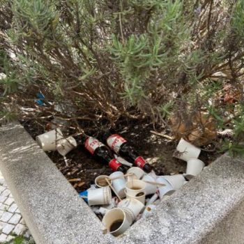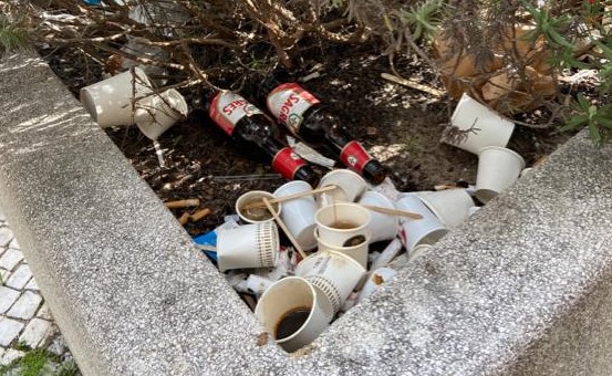 Tem de haver civismo, mas também caixotes de lixo. E se não existem julgamos que deveria ser o estabelecimento a disponibilizá-los no exterior do estabelecimento.