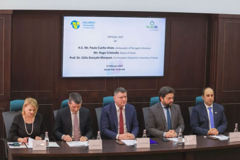 Realizou-se a 19 de fevereiro, na Valahia University of Târgoviște, na Roménia, uma conferência que celebrou a geminação das cidades de Tomar e Târgoviște, em paralelo com o assinalar do financiamento da aliança europeia KreativEU, liderada pelo Instituto Politécnico de Tomar (IPT). A delegação nacional contou com a presença do embaixador de Portugal, Paulo Cunha Alves, do presidente da Câmara de Tomar, Hugo Cristóvão, e do pró-presidente do IPT, Célio Gonçalo Marques.