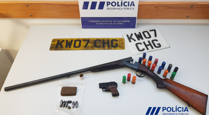 Ao detido foi apreendida uma espingarda 12mm (furtada), uma arma de alarme (modificada), 16 cartuchos de 12mm, 177 doses individuais de Haxixe e duas chapas de matrícula pertencentes a viatura já desmantelada.