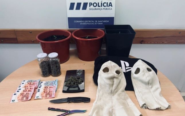 Foram apreendidas sessenta e oito gramas de Liamba, seis doses Haxixe, três plantas de Cannabis, uma balança, duas armas brancas, dois “passa montanhas”, cento e sessenta e seis euros em dinheiro do BCE e várias peças de vestuário.