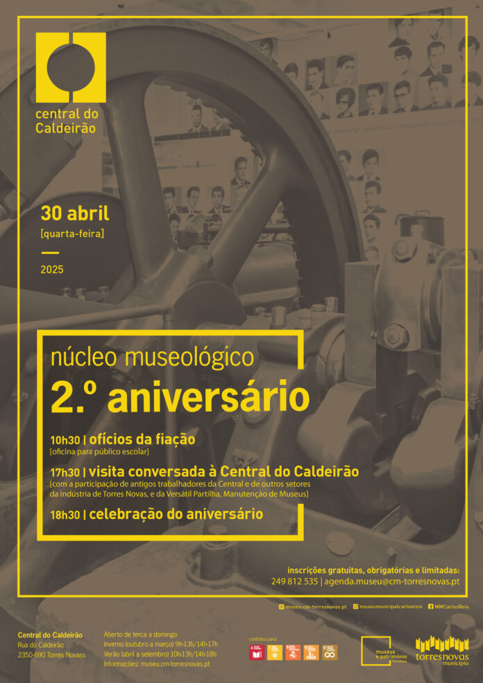 No próximo dia 30 de abril, o Município de Torres Novas assinala o 2.º aniversário do núcleo museológico da Central do Caldeirão, com uma oficina para o público escolar e uma visita conversada para o público geral.
