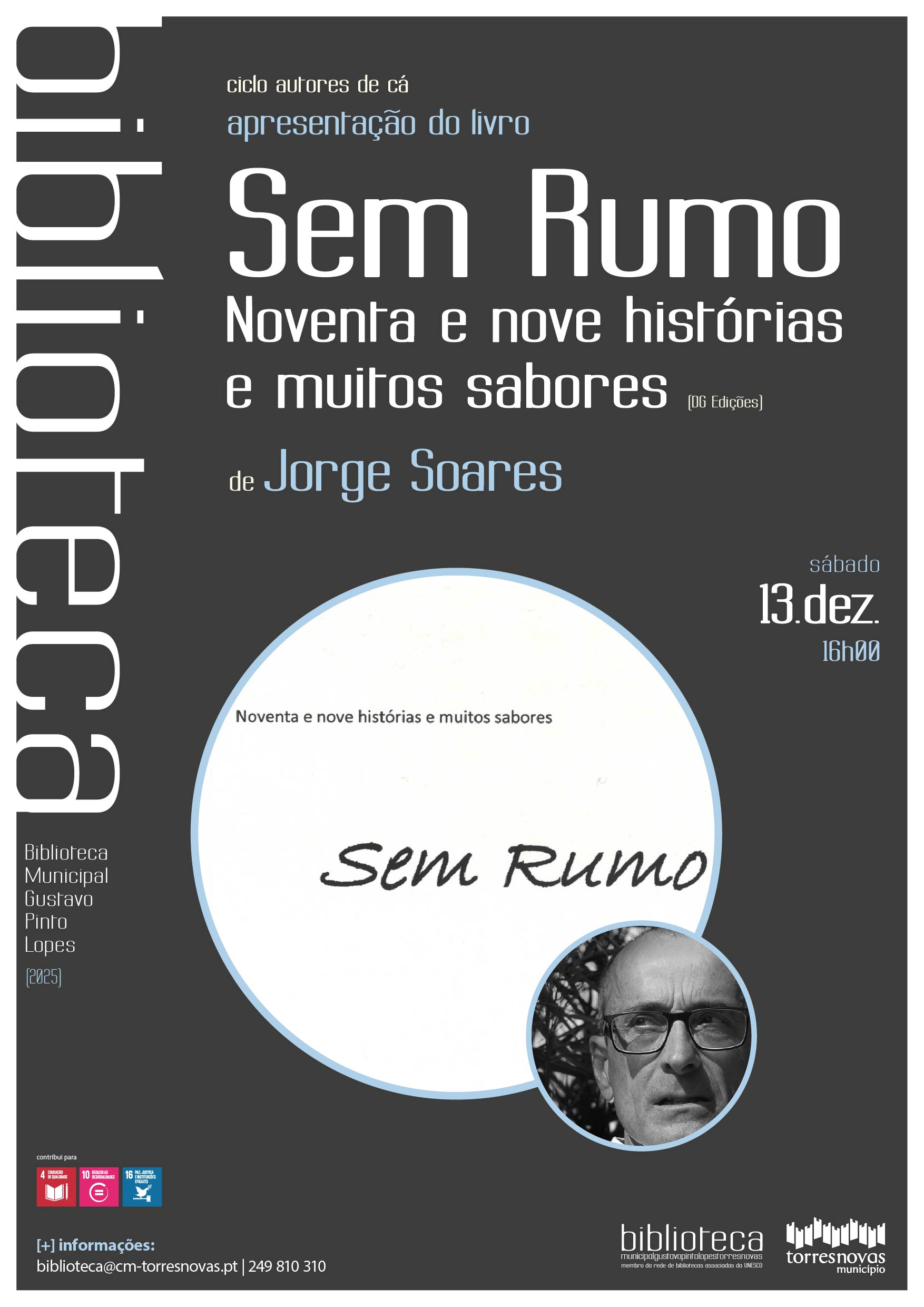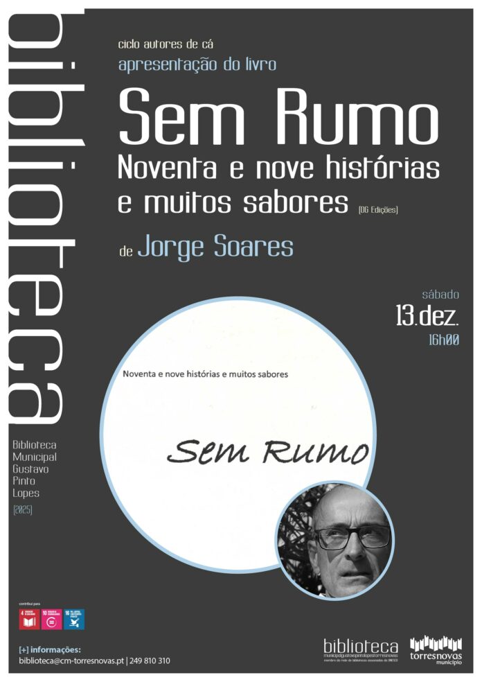 No âmbito da programação da Biblioteca Municipal Gustavo Pinto Lopes e do ciclo “Autores de cá”, realizar-se-á a apresentação do livro “Sem Rumo – noventa e nove histórias e muitos sabores”, da autoria de Jorge Soares (DG Edições), no próximo dia 13 de dezembro, pelas 16 horas.