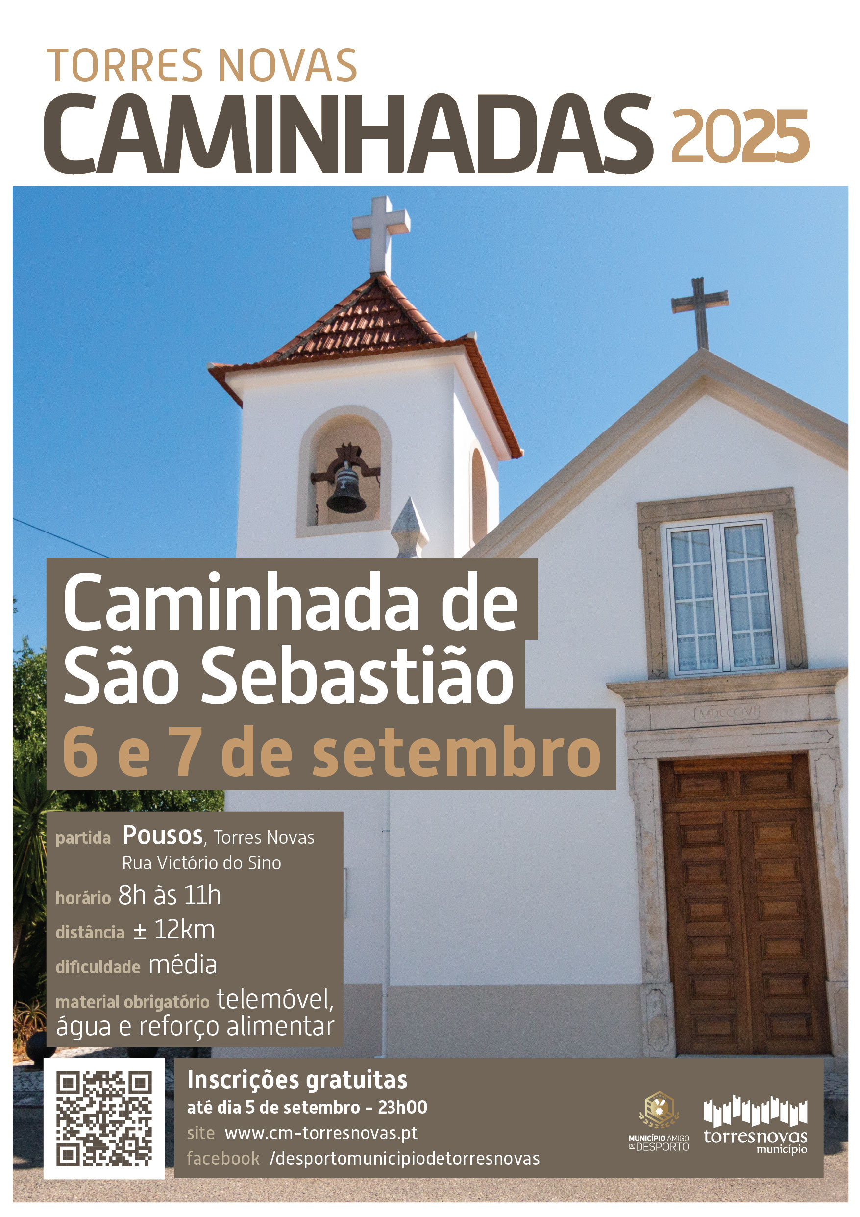 O Município de Torres Novas vai promover, nos dias 6 e 7 de setembro, a Caminhada de São Sebastião. Com um percurso de cerca de 12 km e grau de dificuldade médio, a iniciativa terá início na rua Victório do Sino, em Pousos.