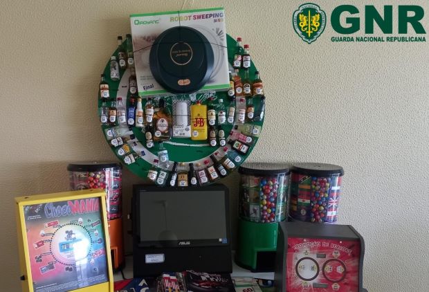 No decorrer da ação de fiscalização foram apreendidas três máquinas de jogo de fortuna ou azar, três máquinas de modalidades afins de jogo de fortuna ou azar, três cartazes correspondentes a prémios das máquinas de modalidades afins de fortuna ou azar, um cartaz com brindes e 54 euros em numerário.