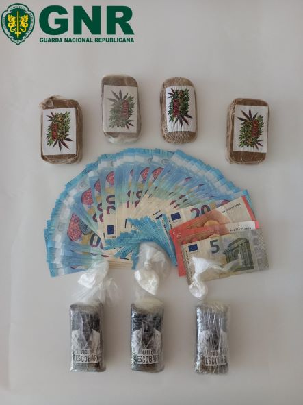Durante uma ação de patrulhamento, os militares da Guarda procederam à abordagem e fiscalização de uma viatura, tendo constatado que o condutor e o passageiro da viatura apresentavam um comportamento suspeito. No decorrer da ação policial foi efetuada uma revista ao suspeito, tendo sido encontrada na sua posse uma elevada quantidade de produtos estupefacientes, nomeadamente: 1 253 doses de haxixe, 74 doses de cocaína, 74 doses de crack e 905 euros em numerário.
