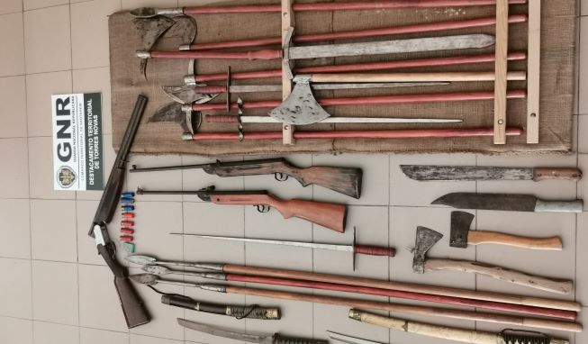 Na sequência de uma investigação, os militares da Guarda apuraram que o suspeito exercia violência física e psicológica sobre a vítima, a sua companheira de 63 anos. Foi dado cumprimento a um mandado de busca domiciliária, onde foram apreendidas três armas de fogo, 19 armas brancas como lanças, machados e espadas e sete cartuchos.