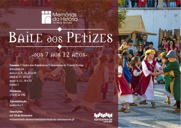 O Baile dos Petizes destina-se a crianças dos 7 aos 12 anos. Os ensaios irão decorrer no salão dos Bombeiros Voluntários de Torres Novas, às segundas-feiras, a partir de 24 de fevereiro, das 17h30 às 19h.