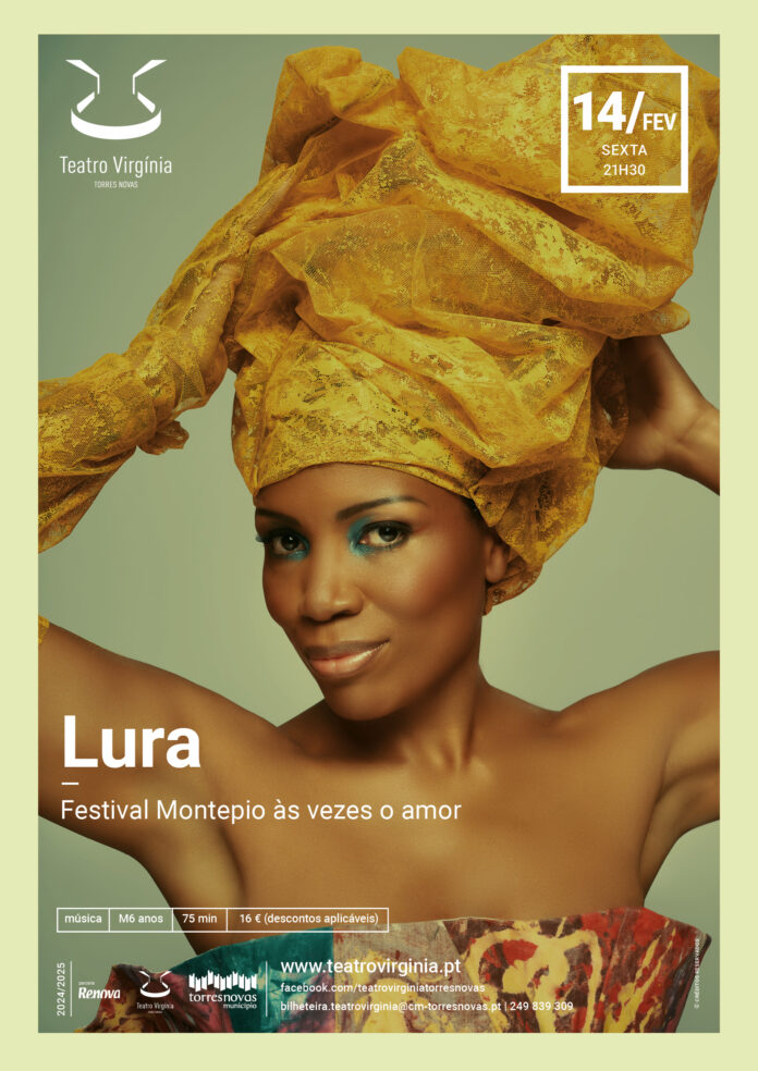 No próximo dia 14 de fevereiro, pelas 21h30, sobe ao palco do Teatro Virgínia a cantora Lura, uma voz incontornável da lusofonia. Os bilhetes têm o custo de 16 €, sendo aplicáveis descontos.