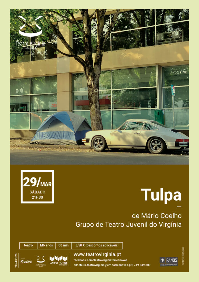 No próximo dia 29 de março, sábado, às 21h30, o Grupo de Teatro Juvenil do Virgínia sobe ao palco para estrear a peça «Tulpa», com texto de Mário Coelho e encenação e dramaturgia de Raquel André e Nuno Pinheiro. Os bilhetes têm o custo de 8,5 euros, sendo aplicáveis descontos.