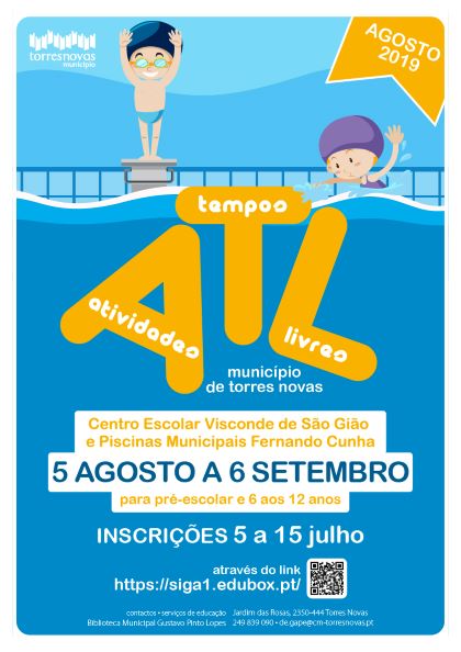 Estas atividades destinam-se a crianças em idade pré-escolar e dos 6 aos 12 anos e as inscrições podem ser feitas até dia 15 de julho a partir do link https://siga1.edubox.pt/ ou presencialmente nos serviços de Educação, sitos no rés-do-chão da Biblioteca Municipal de Torres Novas.