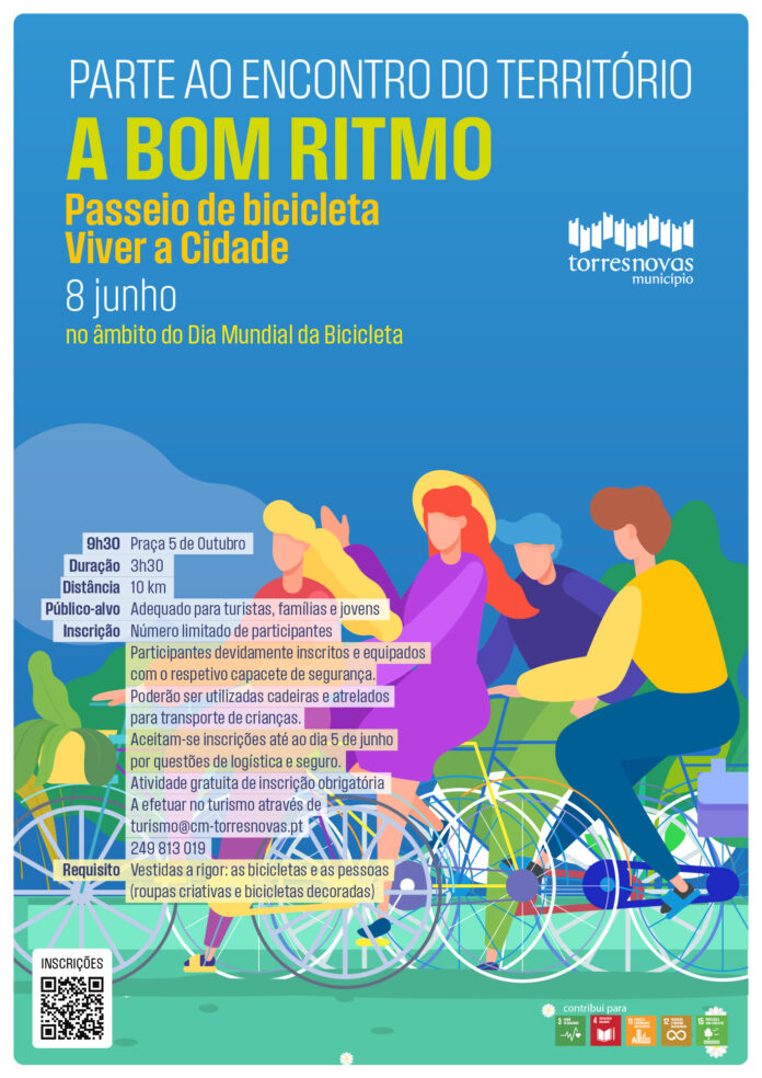No âmbito do Dia Mundial da Bicicleta, o Município de Torres Novas vai promover, no dia 8 de junho, um passeio de bicicleta pela cidade com o objetivo de que os participantes partam à descoberta do património natural e turístico de Torres Novas, pedalando por ruas e ruelas do concelho.