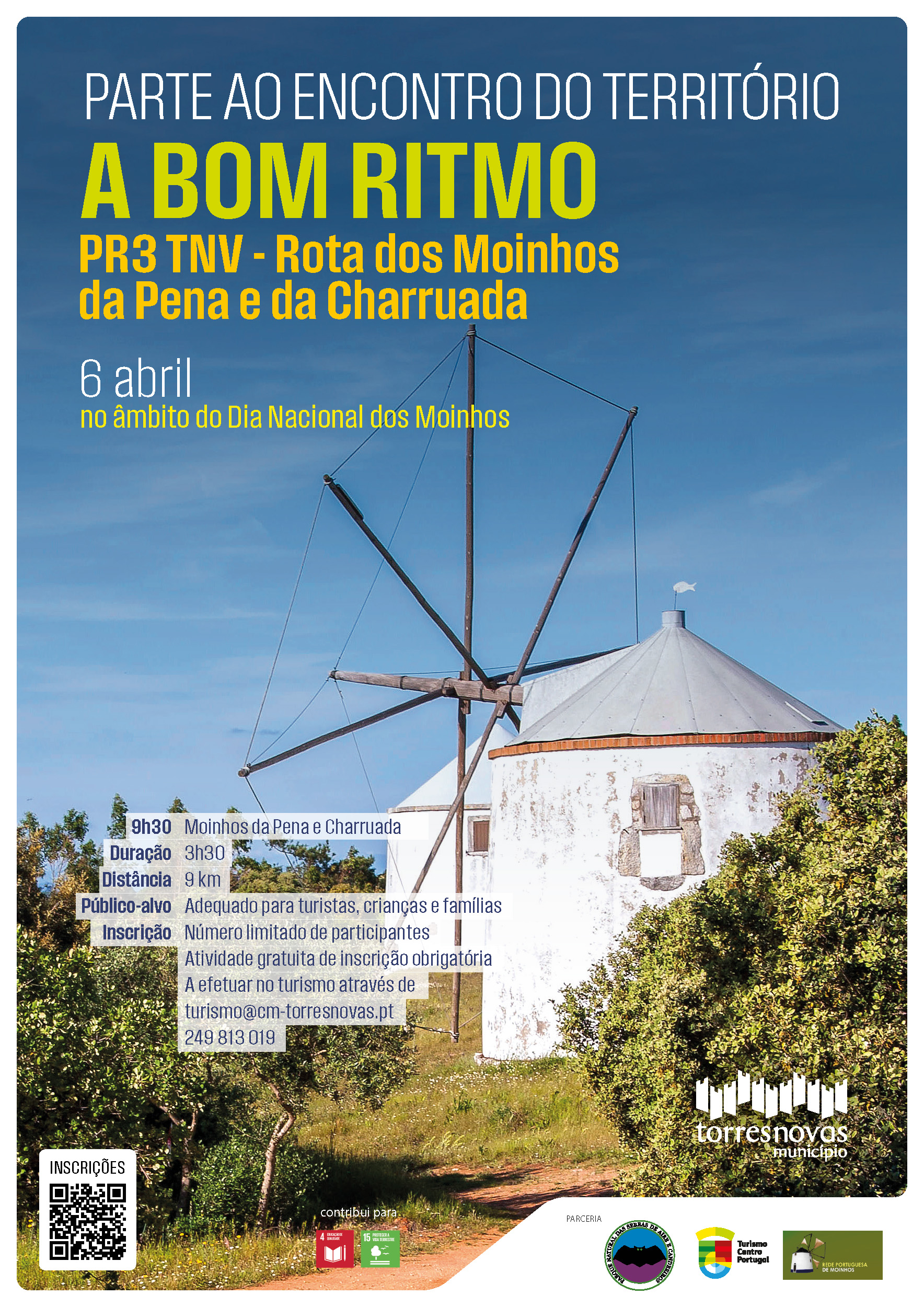 O Município de Torres Novas irá promover, no próximo dia 6 de abril, um passeio interpretativo na PR3 TNV – Rota dos Moinhos da Pena e da Charruada com o objetivo de que os participantes partam à descoberta do património natural e turístico do concelho de Torres Novas.