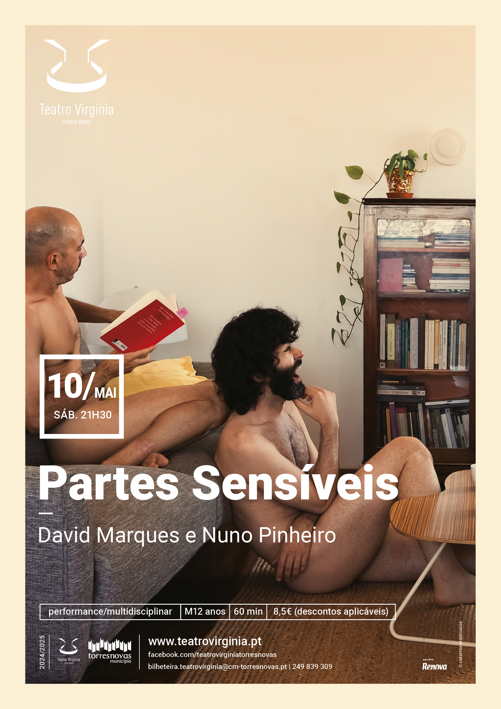 A performance «Partes Sensíveis», com criação, texto e interpretação de David Marques e Nuno Pinheiro, sobe ao palco do Teatro Virgínia no próximo sábado, dia 10 de maio, a partir das 21h30.