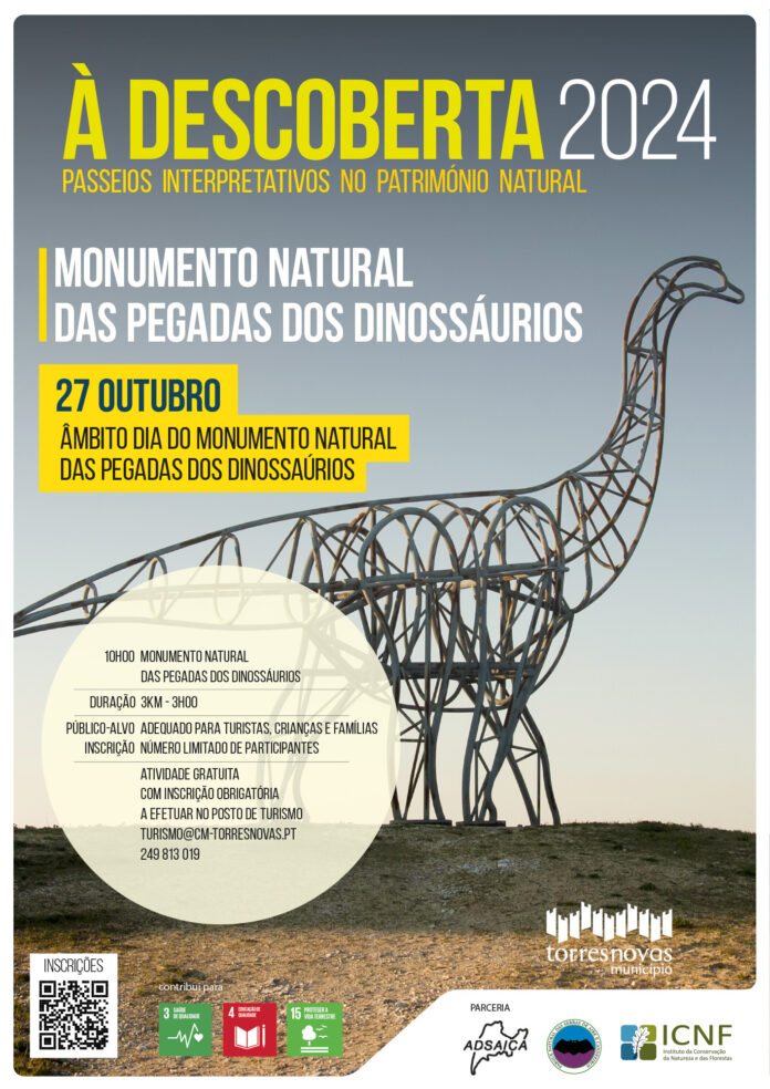 No âmbito do Dia do Monumento Natural das Pegadas de Dinossáurios, o Município de Torres Novas vai promover, no próximo dia 27 de outubro, um passeio interpretativo no Monumento Natural das Pegadas de Dinossáurios, com o objetivo de que os participantes partam à descoberta do património natural e turístico do concelho de Torres Novas.