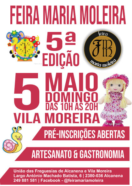 A Vª Edição da Feira Maria Moleira vai realizar-se a 5 de maio de, no Largo dos Correios em Vila Moreira, encontrando-se abertas as pré-inscrições para participar.